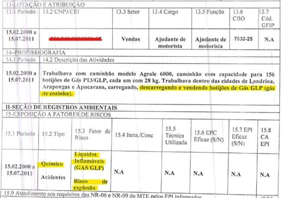 Dessa forma, podemos observar que o documento registra, de forma expressa, a exposição tanto aos agentes químicos, quanto a periculosidade da atividade.