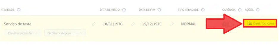 Após, sempre confira e, se necessário, edite manualmente os salários de contribuição em cada um dos vínculos e competências, acessando o botão de “Contribuições”, disponível em cada uma das linhas de atividades lançadas em seu cálculo: