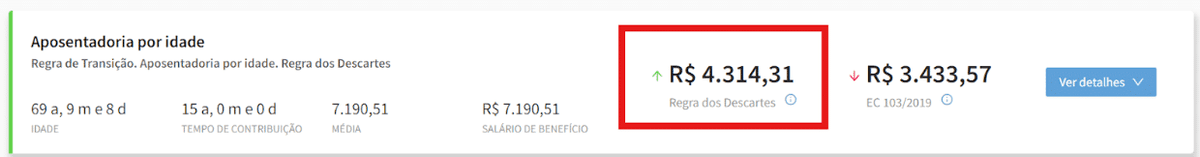 Nesse caso, veja o que acontece se excluirmos os últimos 5 anos de contribuição pelo salário mínimo, seguindo a Regra dos Descartes: