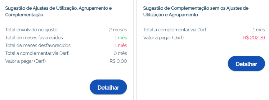 Quando se tratar de contribuições abaixo do mínimo a serem complementadas, como referido no tópico específico, há três possibilidades: pagar a diferença, agrupar contribuições ou utilizar valores excedentes referentes a outra(s) competência(s) para o complemento.
