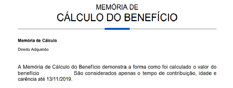 Desde que a Reforma da Previdência foi aprovada em 13/11/2019, o INSS vem considerando apenas o tempo de contribuição e idade até 13/11/2019 para calcular benefícios com direito adquirido.
