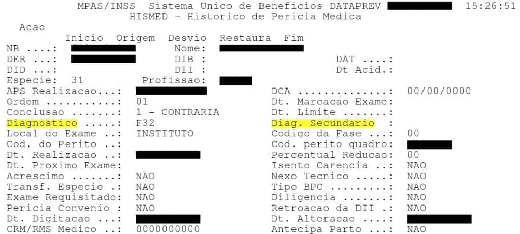 - ter em mãos o Histórico de Perícia Médica (HISMED), onde deverá o perito do INSS informar eventual diagnóstico secundário. Aqui, presumindo que muitos colegas desconhecem o pouco utilizado HISMED, entendo por bem mostrar aos prezados do que se trata: