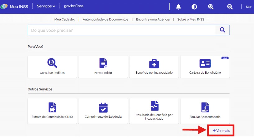 2- Em “Outros serviços”, clique em “+ Ver mais”;