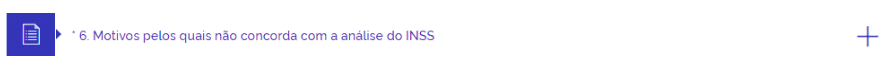 Caso a quantidade de caracteres não seja suficiente, ou, caso prefira, você poderá apresentar suas razões recursais juntando uma petição, em .pdf, clicando em “ + ” no anexo 6. “Motivos pelos quais não concorda com a análise do INSS”;
