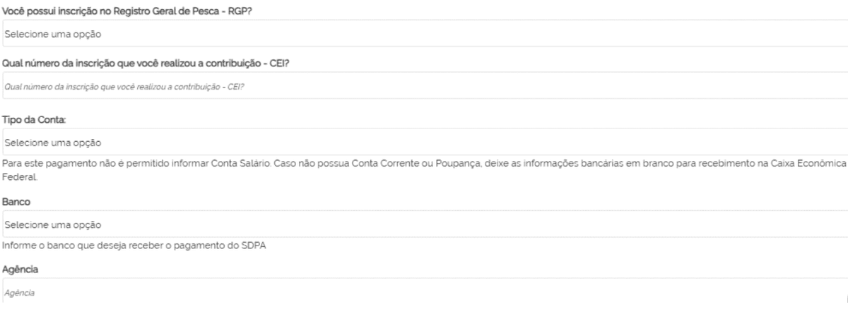 Após, selecione a opção “Seguro Defeso – Pescador Artesanal”: